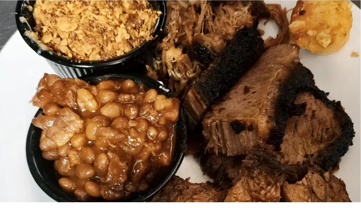 Three ribs and your choice of two 6 oz portion of our delicious meats served with your choice of two sides and a mini corn bread muffin. Pulled Pork, Brisket, Burnt Ends (+$4), House Made Kielbasa, turkey, or Ham.